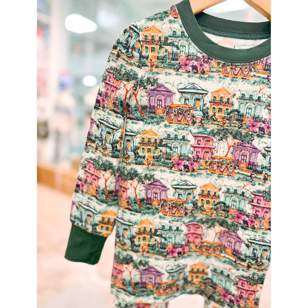 Two Piece Bamboo Pajamas - the perfect blend of comfort and functionality for your little one. Crafted with bamboo viscose, these pajamas offer a soft and luxurious feel for a cozy nights sleep! Elevate bedtime routines in our 'uptown carnival' all over Mardi Gras print bamboo viscose pajamas!