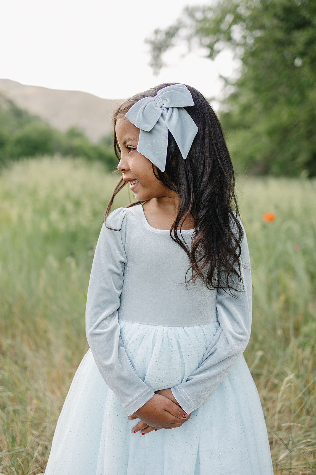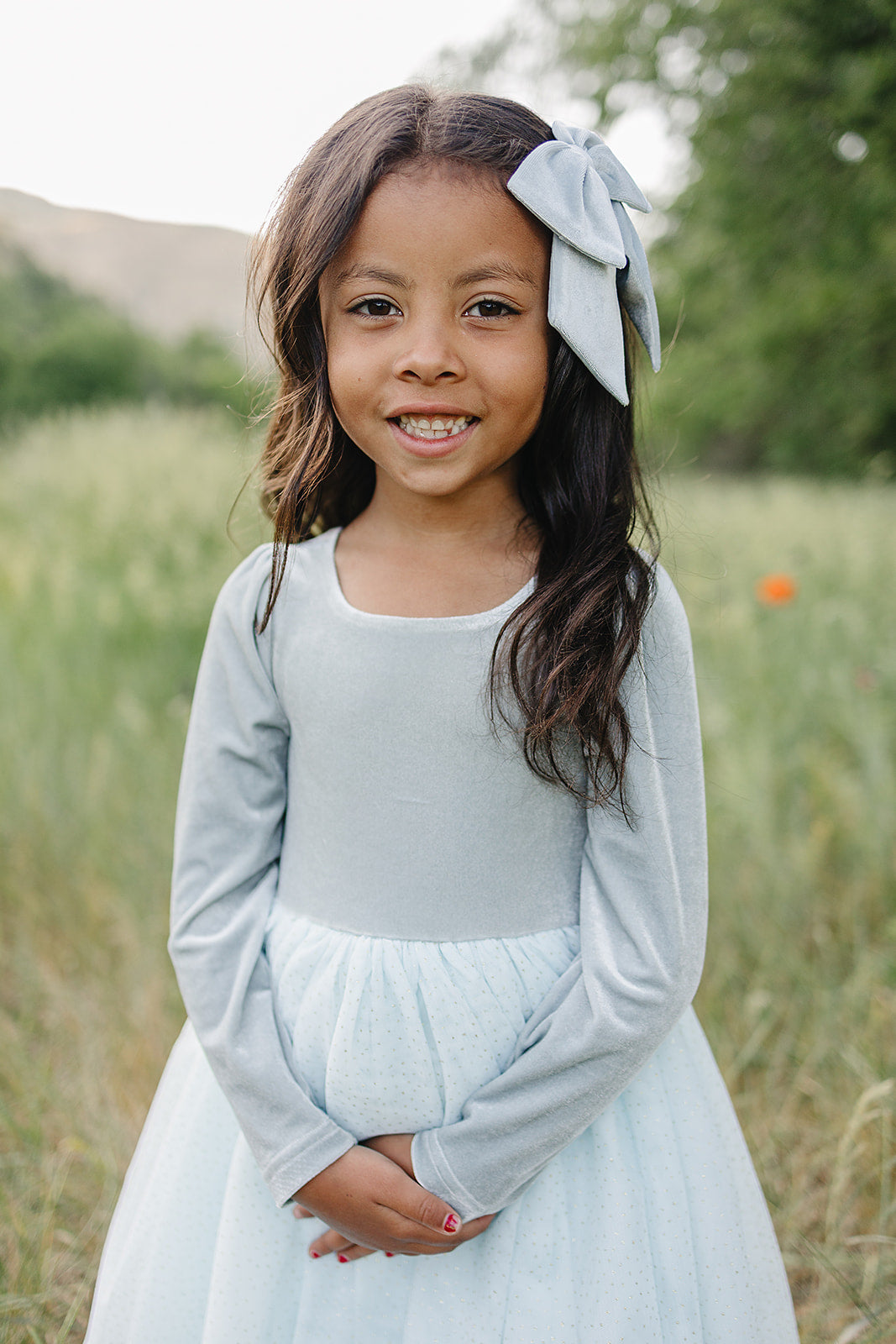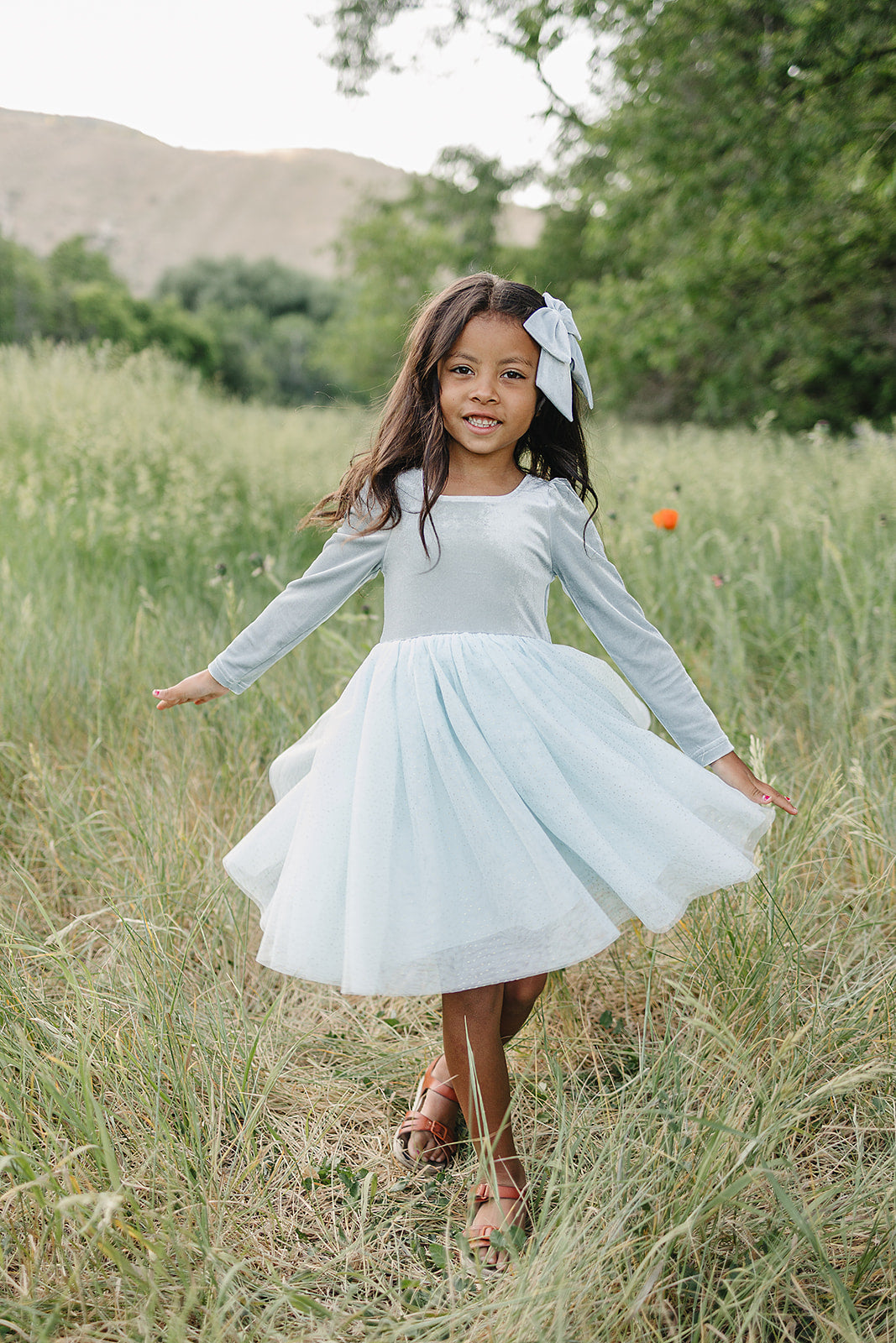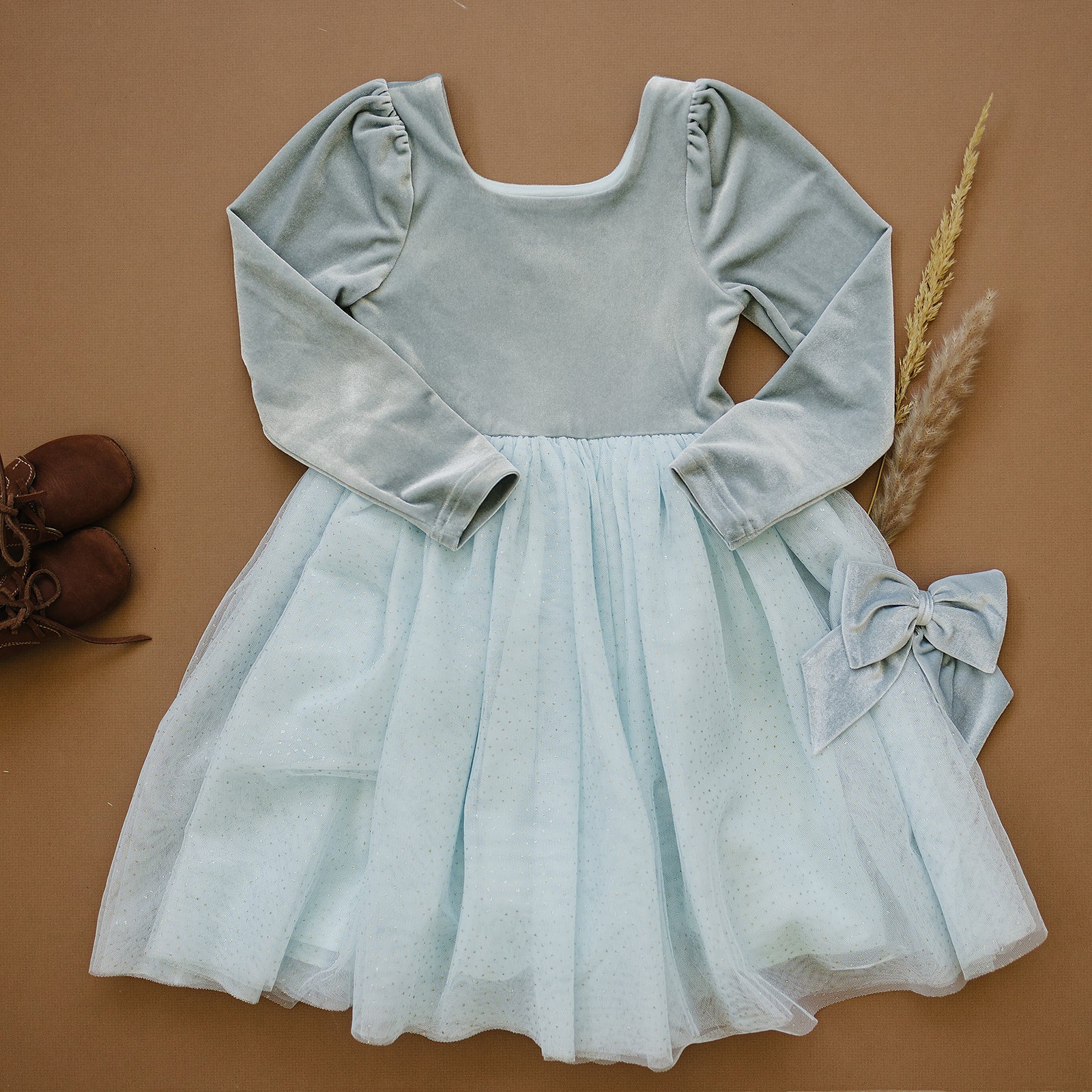 A dreamy combination of elegance and comfort! This long sleeve dress features a soft velvet bodice paired with a full sparkle tulle skirt that twirls with every step. Perfect for holiday photos, special occasions, or everyday magic.