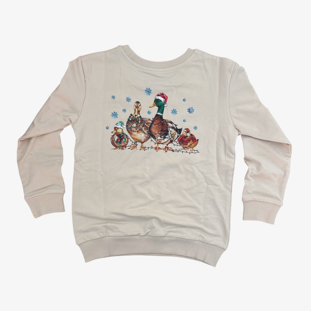 Our classic french terry pullover with "duck the halls" logo on front and our "merry mallards" Christmas mallard graphic on the back.