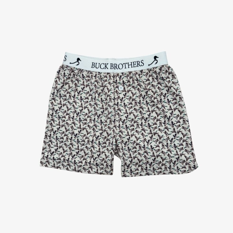 Soft, breathable, and made for comfort, these boxer-style lounge shorts are perfect for your little outdoorsman. Featuring 'delta wings' mallard print and soft elastic waistband with the Buck Brother's logo, they're ideal for relaxing at home, layering under clothes, or winding down after a long day of play.