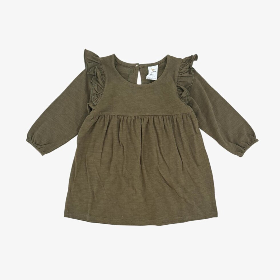 The Cora Dress- a delightful blend of modern flair and timeless charm. This long sleeve dress with ruffle detail adds a touch of western elegance to your little one's wardrobe.