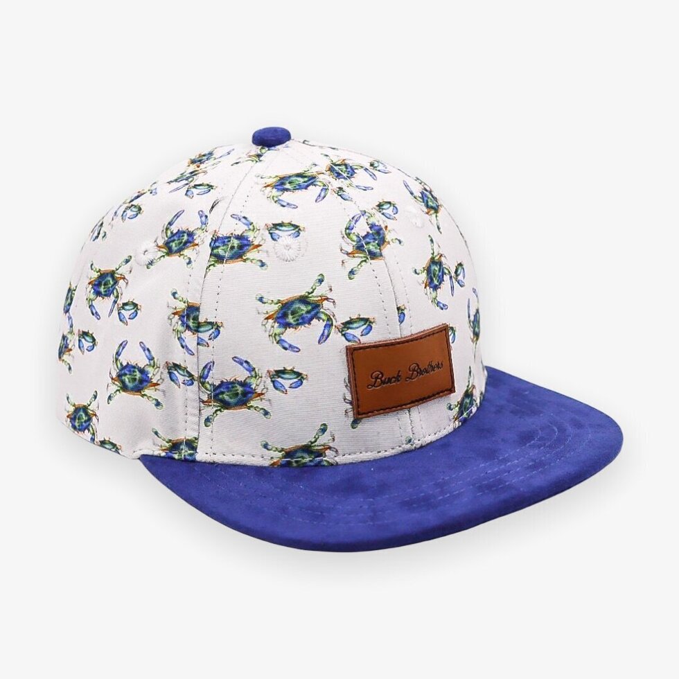Explore the seaside in style with our 'salty vibes' crab print hat! The suede flat brim provides a contemporary edge, while the Buck Brothers leather logo patch adds a touch of rugged charm (patch will have buck and deer logo on it). Perfect for outdoor enthusiasts!