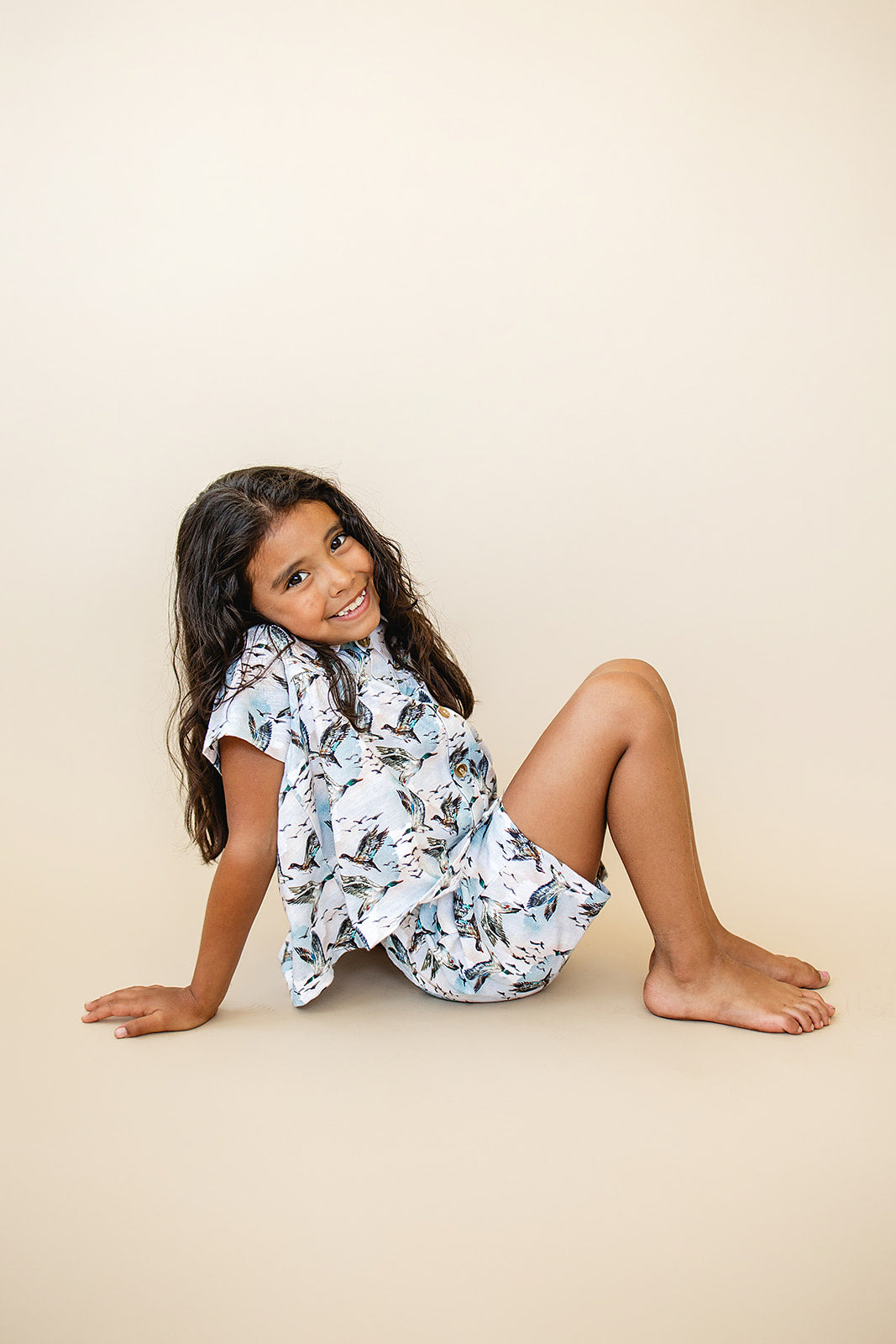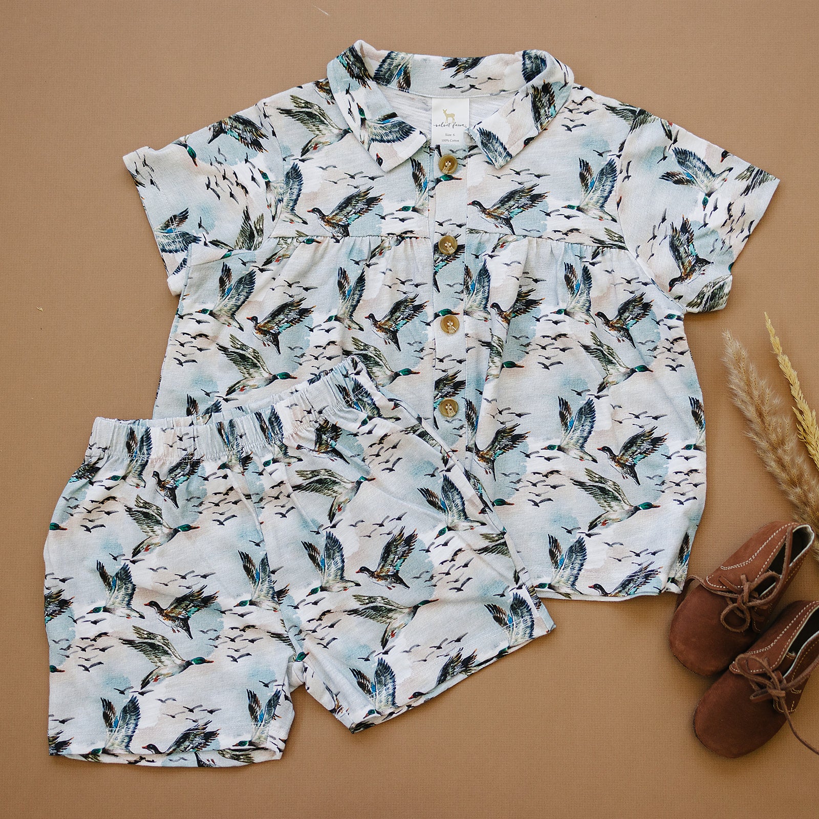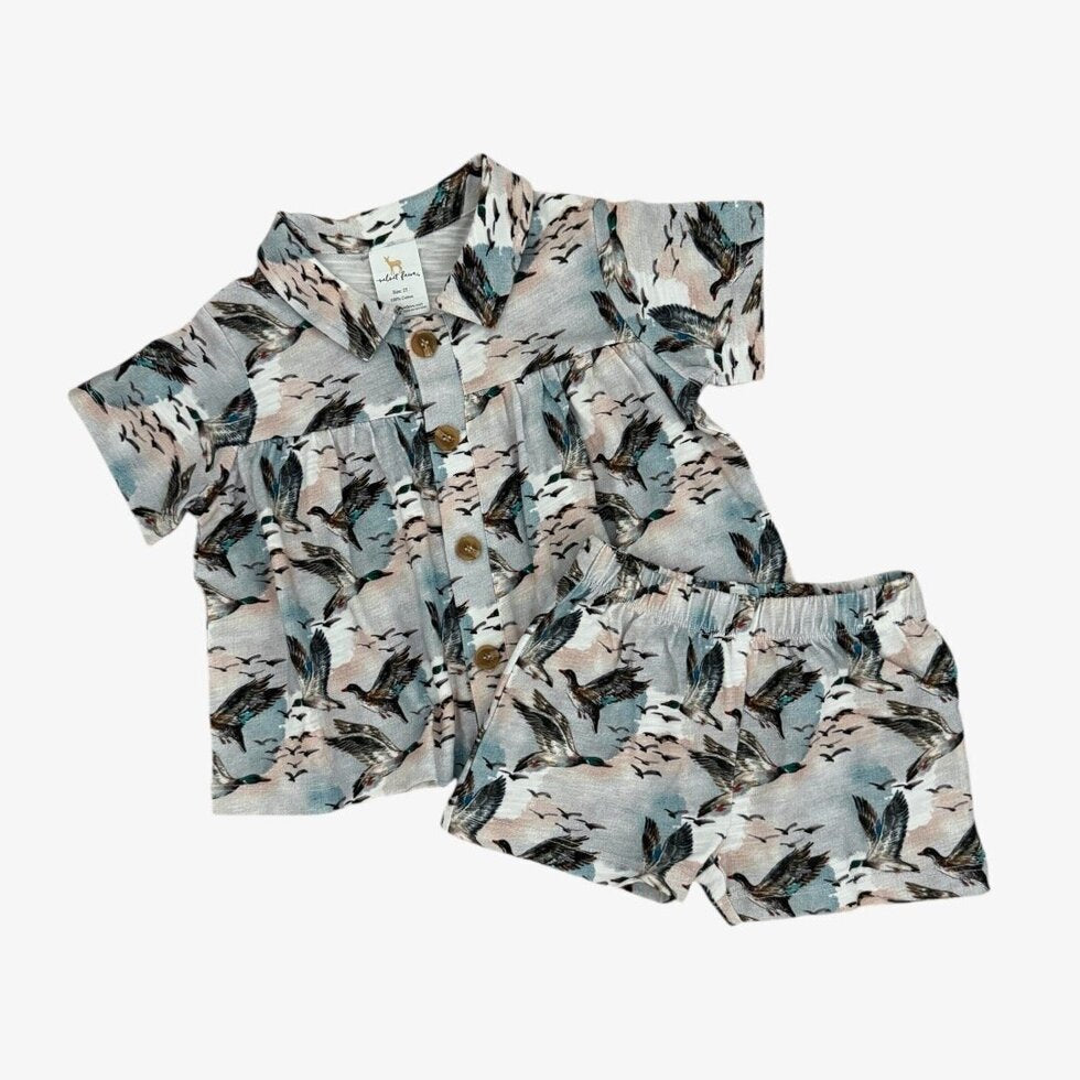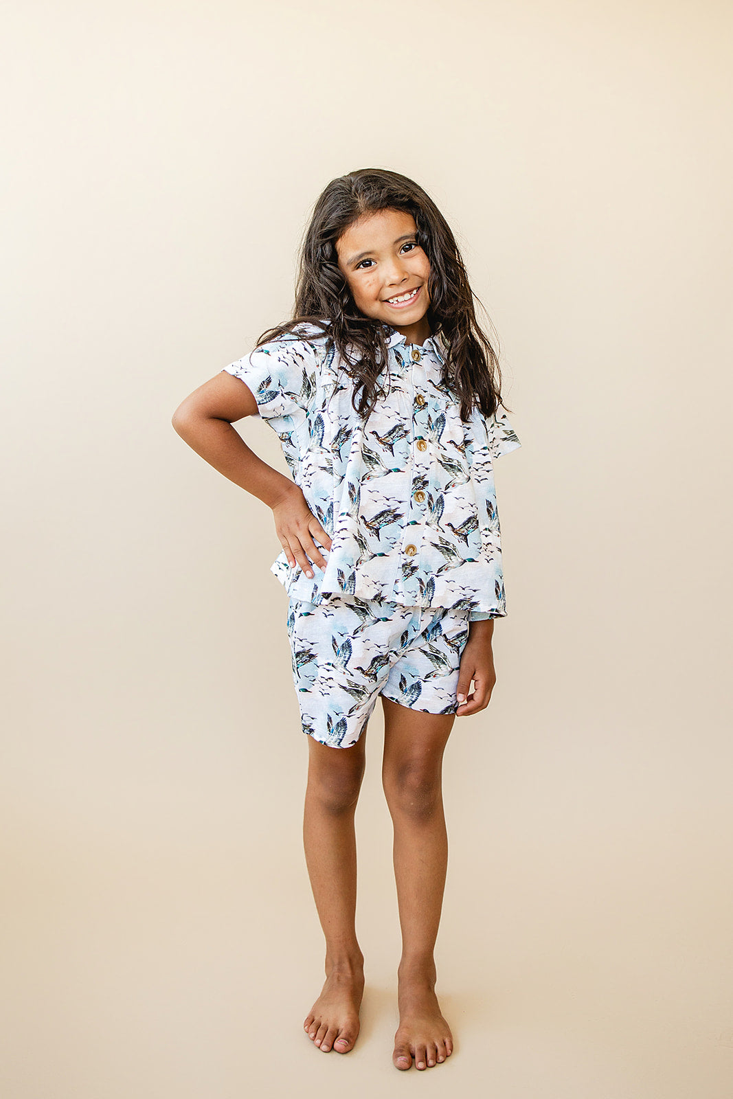 Comfy, coordinated and full of charm - the Macy Set is your go to for everyday adventures. This two piece outfit features a breezy button-up top and matching elastic waistband shorts.
