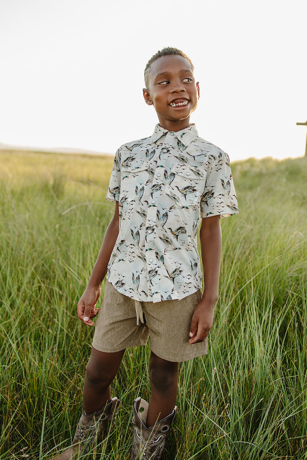 performance pearl snap || mallard sky (child)