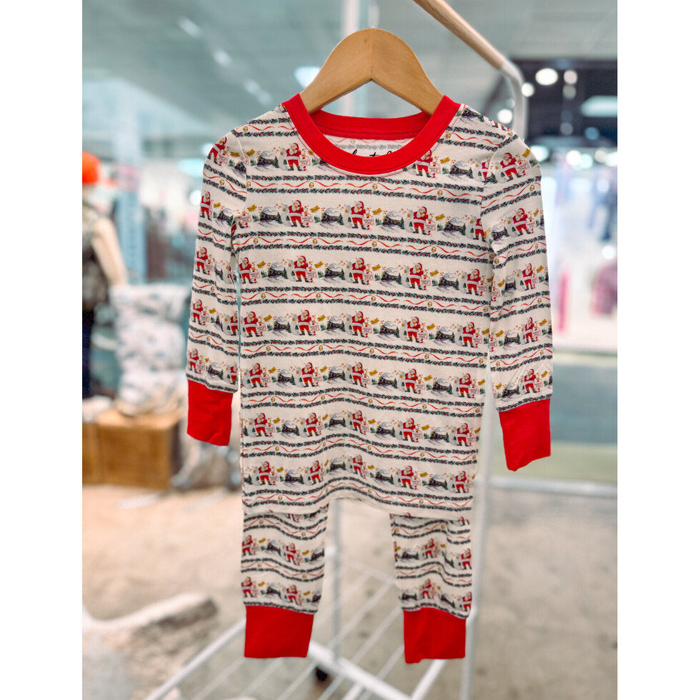 Two Piece Bamboo Pajamas - the perfect blend of comfort and functionality for your little one. Crafted with bamboo viscose, these pajamas offer a soft and luxurious feel for a cozy nights sleep! Elevate bedtime routines in our 'Christmas Train' all over print pajamas!