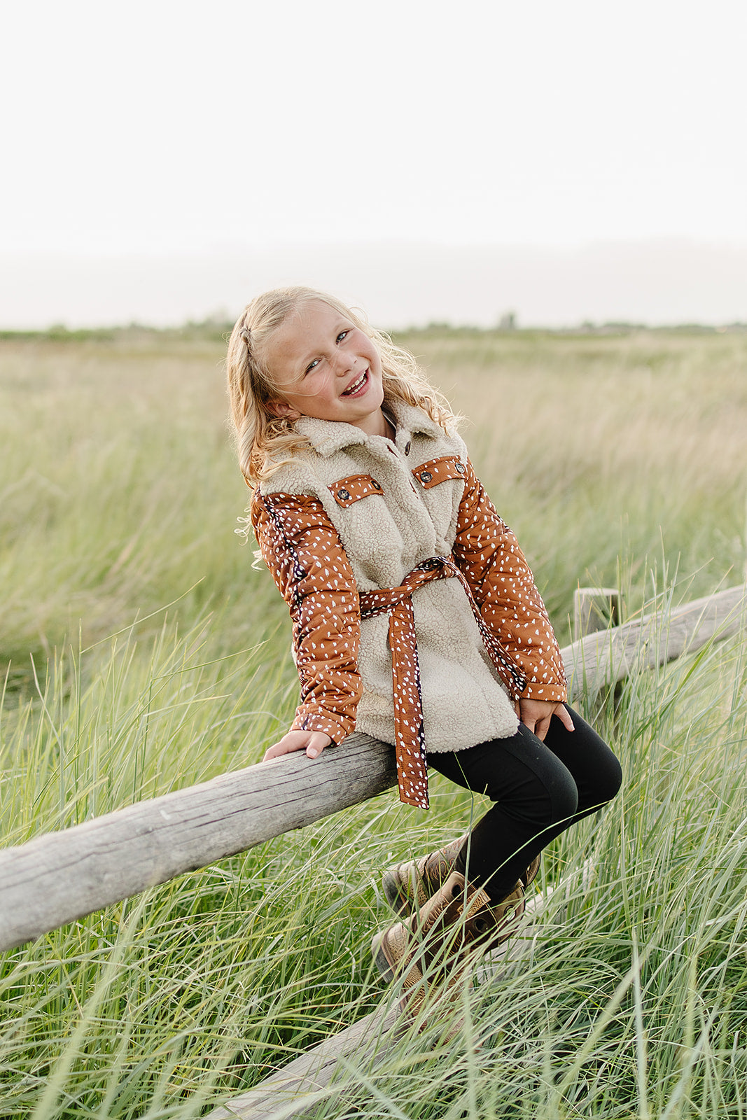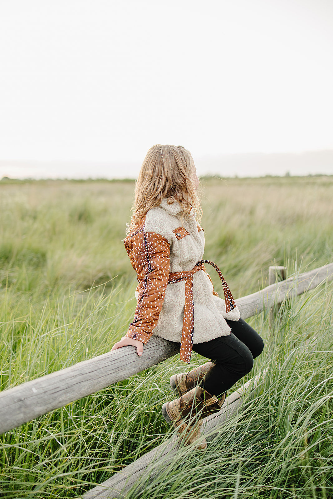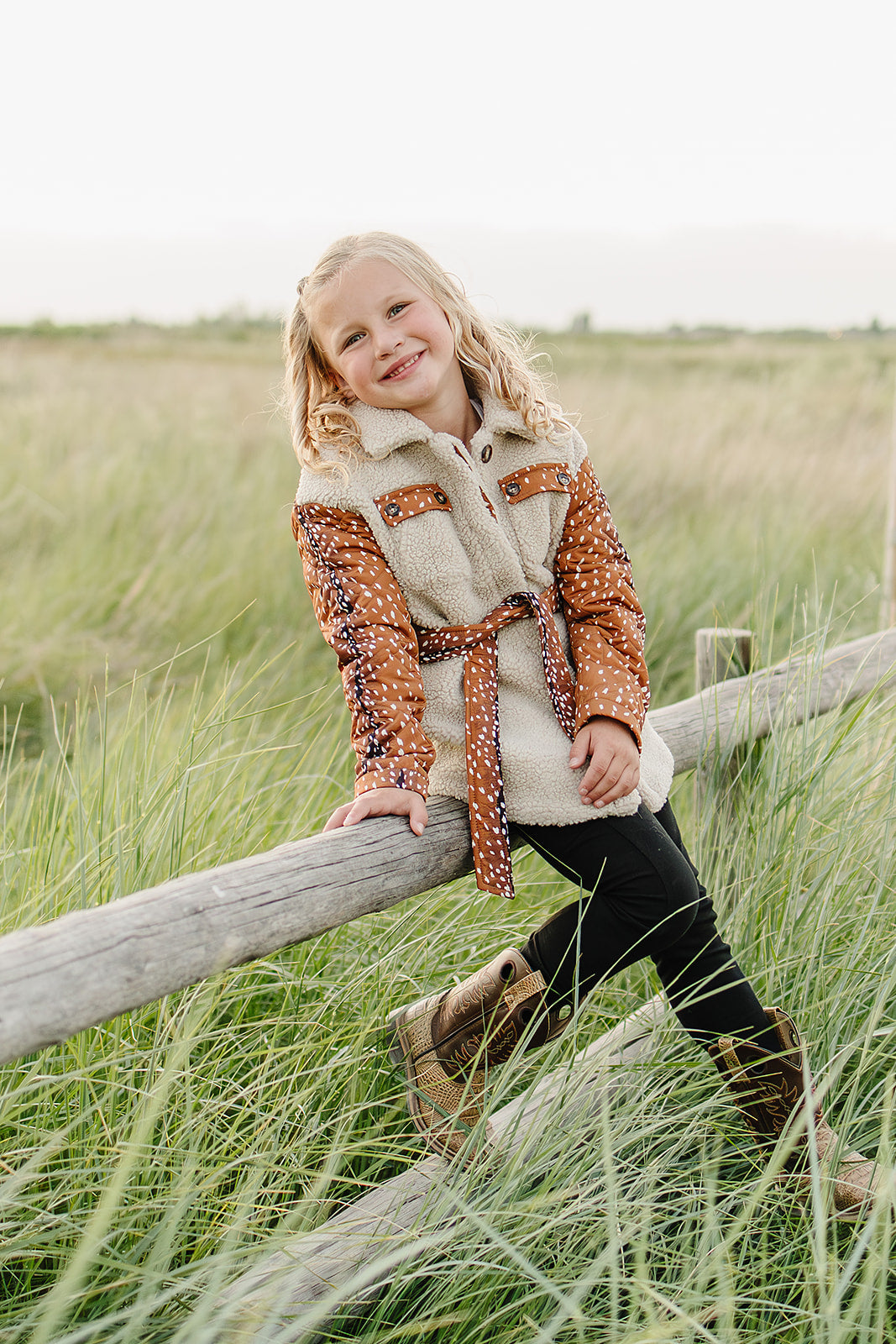 The Reagan Sherpa Quilted Jacket is the perfect mix of cozy warmth and outdoor-inspired style. Designed with ultra-soft sherpa fleece and quilted fawn print panels, this jacket keeps her snug while standing out in the best way. The removable belted waist adds a flattering touch of sophistication, making it versatile enough for school days, holiday outings or crisp fall adventures.