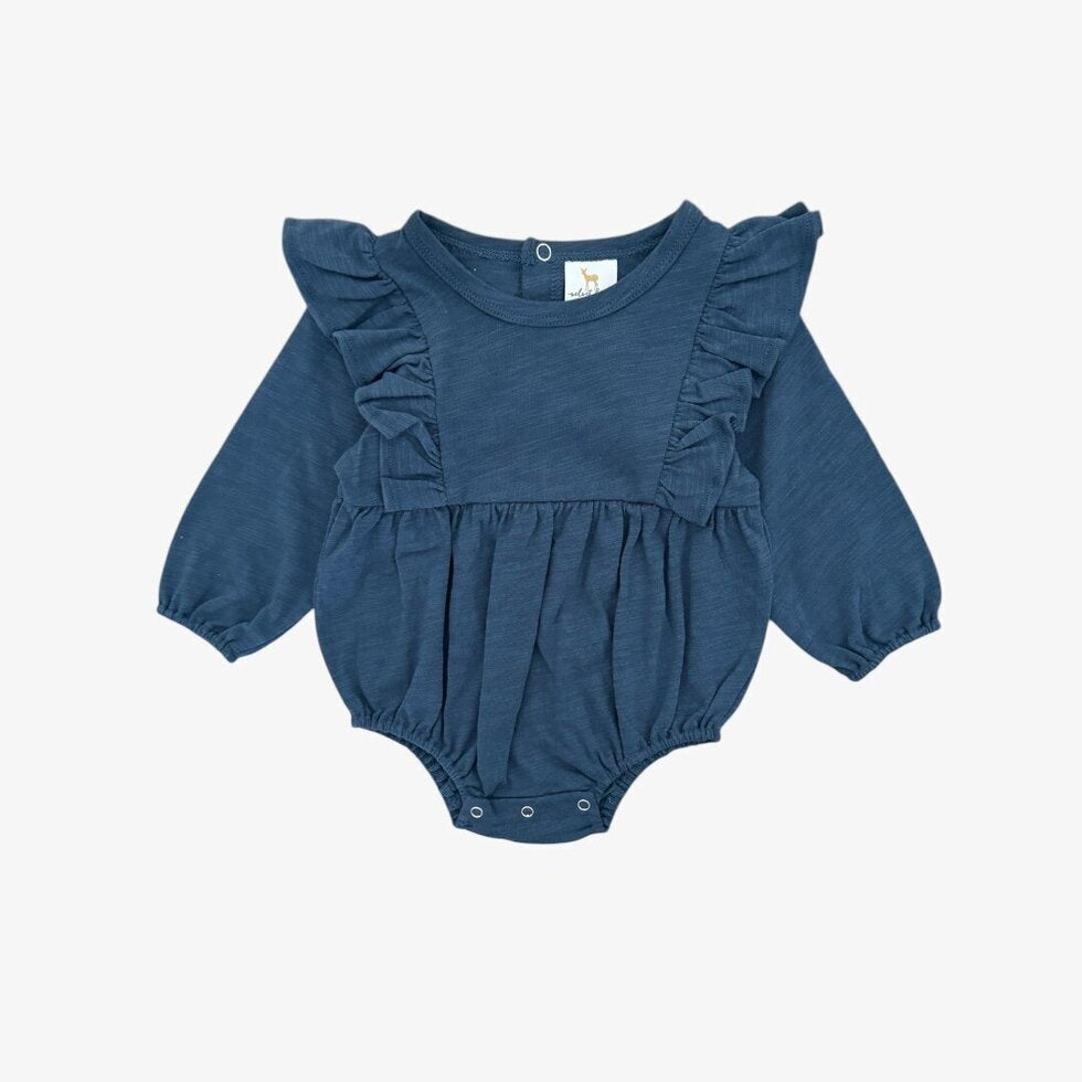The Vivian Bubble - a perfect harmony of style and comfort. Made of soft cotton, this charming bubble features long sleeves and a sweet ruffle detail on the shoulder. It brings a playful fresh vibe to your little one's wardrobe.