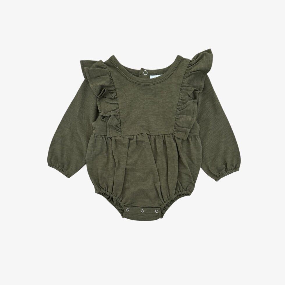 The Vivian Bubble - a perfect harmony of style and comfort. Made of soft cotton, this charming bubble features long sleeves and a sweet ruffle detail on the shoulder. It brings a playful fresh vibe to your little one's wardrobe.