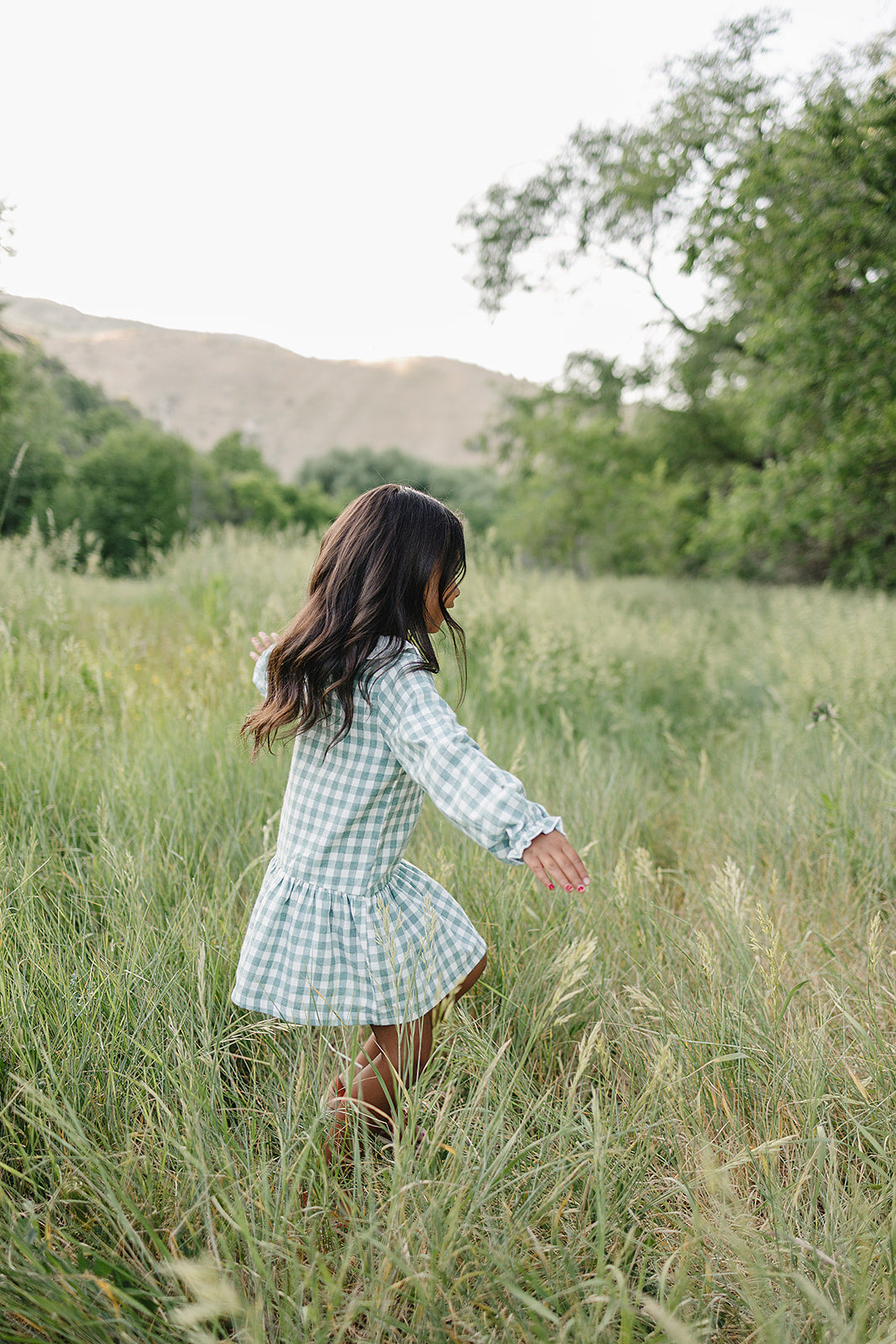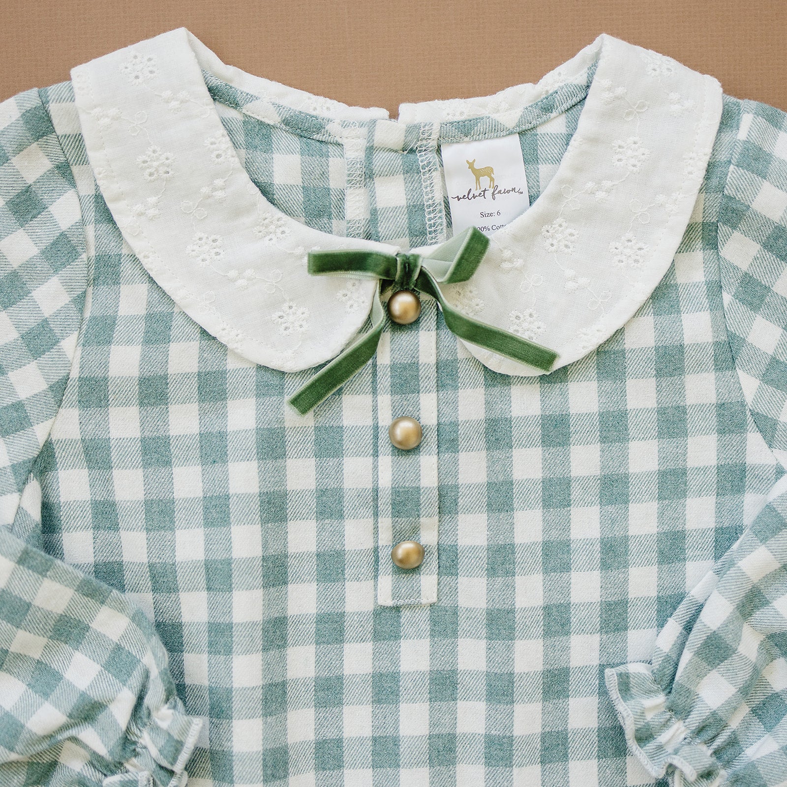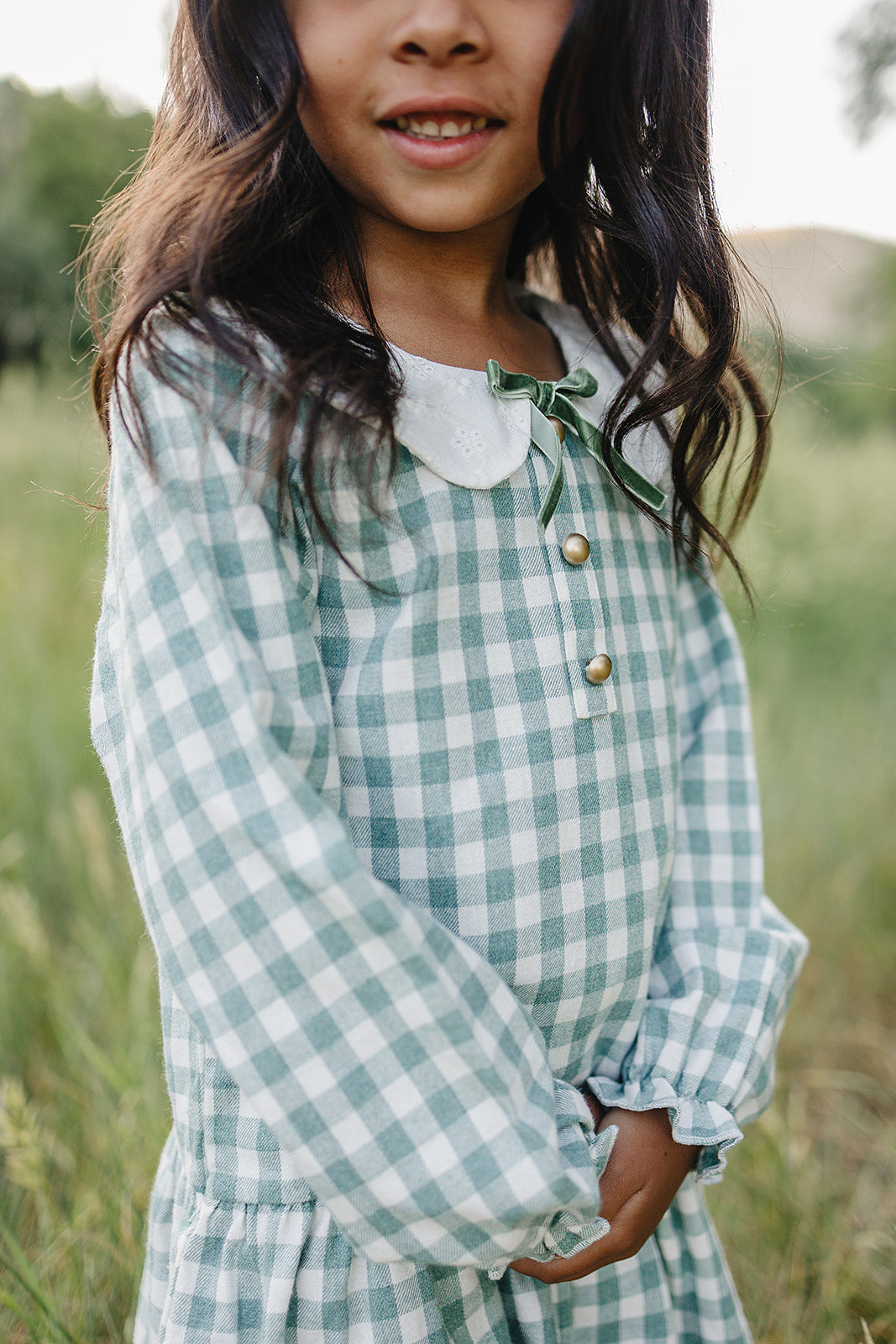 The Wendy Dress- a delightful blend of modern flair and timeless charm. This long sleeve dress with drop hem detail & Peter Pan collar adds a touch of western elegance to your little one's wardrobe.
